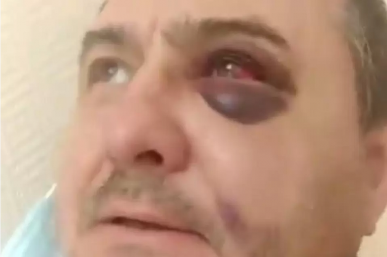 «У меня двойной перелом челюстно-орбитального комплекса», — говорит Руслан Казанцев на видео, демонстрируя огромный кровоподтек вокруг левого глаза.