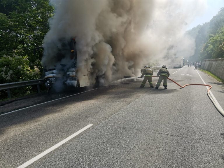 Предварительно, причиной ДТП стал отказ тормозов у одного из них, он врезался во впереди идущий и загорелся.