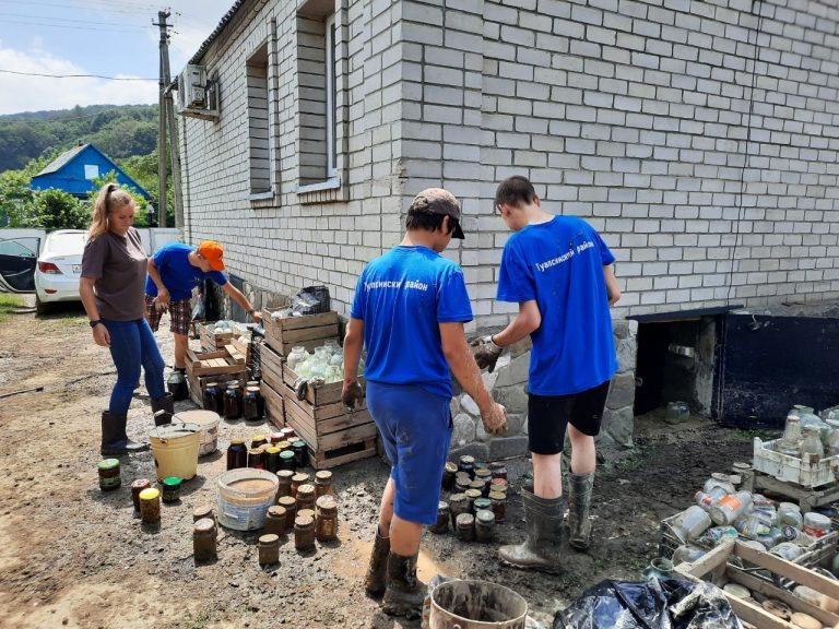 В первую очередь шли к тем, кому особенно трудно — пожилым, одиноким, маломобильным людям, многодетным семьям. Добровольцы расчищали дома и дворы от ила и наносного мусора. Помогали приводить в порядок то, что еше можно было спасти, расчищали пляжи и социальные объекты.