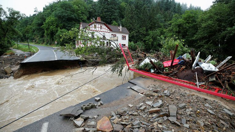 14 июля сильнейшие дожди прошлись по Западной части Германии. Реки вышли из берегов, разрушили дороги и несколько домов. Особенно пострадали Северный Рейн — Вестфалия, Рейнланд-Пфальц, Саар и Гессен.