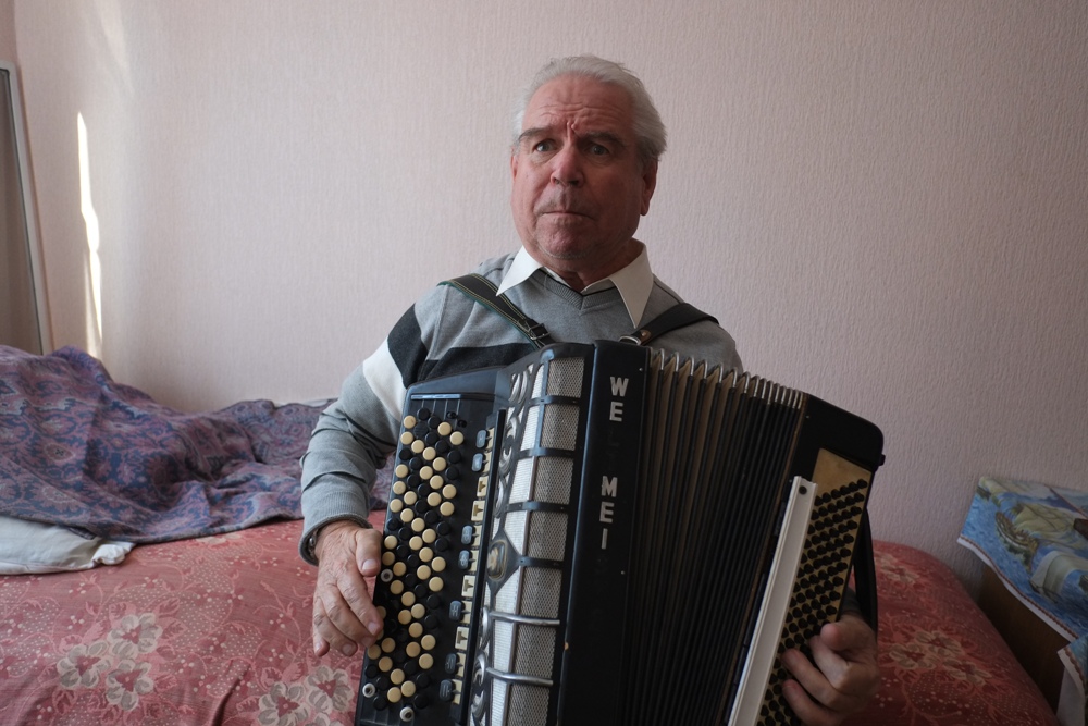 Родился я в 1942 году на юге Башкирии, в селе Старая Отрада. Нас у мамы было шестеро – я, брат Константин и четыре сестры. Наш отец погиб на фронте Великой Отечественной. У мамы я был последним ребёнком, родился с небольшим остатком зрения. Мама, сестры и брат работали в колхозе. Меня одного оставляли дома. Мама хорошо пела – это передалось и мне. В 1949 году мы с родными переехала в город Кумертау. С 9 лет пошел в обычную школу, но из-за слабого зрения учиться там не смог. От соседей мама узнала, что в Бирске работает школа-интернат для слепых детей, и, собрав необходимые документы, повезла меня туда. Наша школа занимала два бывших купеческих дома. Моя первая учительница самоучкой играла на мандолине, а из нас организовала шумовой оркестр – играли на ложках, погремушках и на всем, что может греметь и шуметь. На школьных мероприятиях мы пользовались успехом. В школе я за неделю освоил букварь — очень хотелось читать. С тех пор предпочитаю читать по Брайлю (рельефно-точечный тактильный шрифт для незрячих людей). В школе было тесно, ребята спали на кроватях по двое, в столовой сидели плотными рядами за длинными столами, а ели и пили из эмалированной посуды в две смены. Хлеб выдавали порциями, но Бирск утопал в фруктовых садах, потому фрукты мы получали частенько.