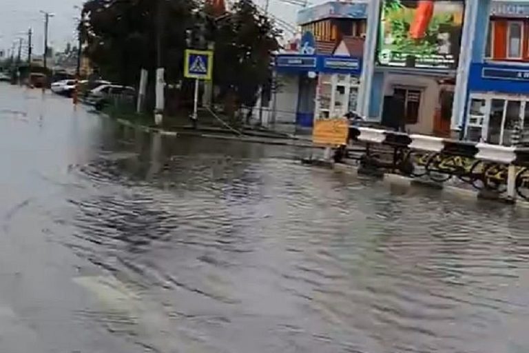 После сильных ливней были затоплены улицы курортного местечка Витязево (Анапа) и поселка Кучугуры (Темрюк).