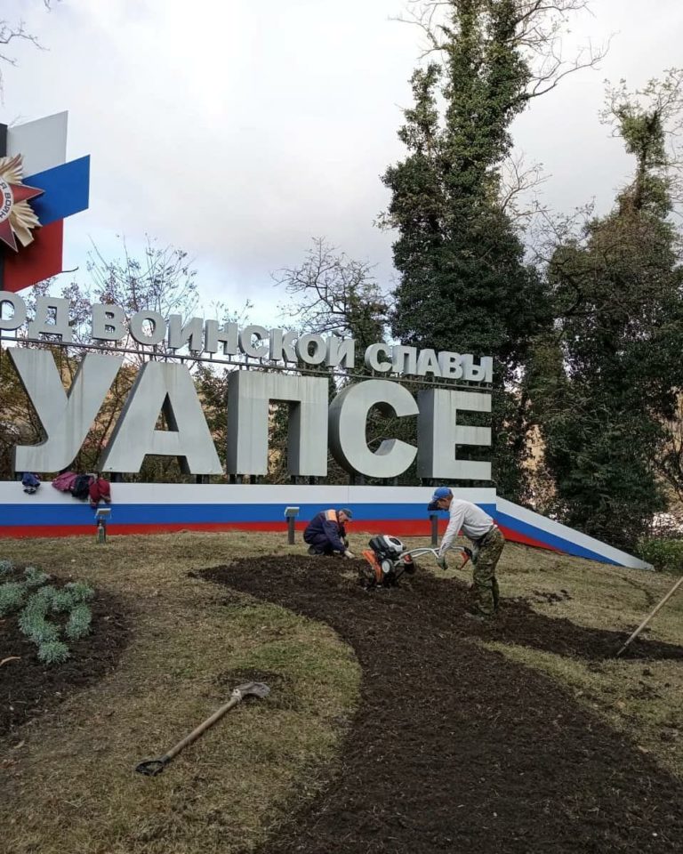 «Мы продолжаем обустраивать городские клумбы и цветники в соответствии с сезоном, — рассказал нам начальник МБУ «Благоустройство города Туапсе» Сергей Сандров. — Параллельно ведутся работы по высадке зимних цветов в центре города, а также в микрорайонах. Сегодня бригада озеленителей трудится на въездной композиции со стороны Агоя».