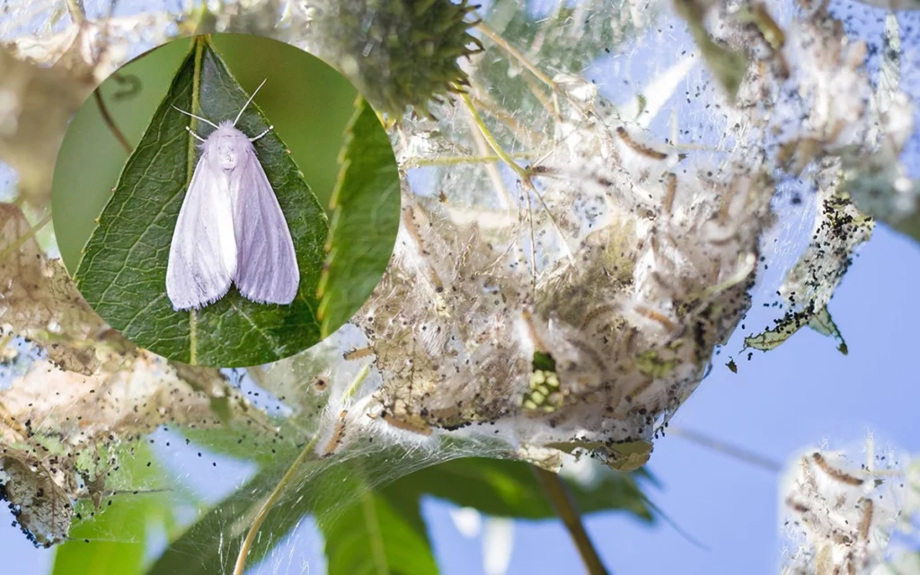 - В климатических условиях нашего региона развивается два поколения американской белой бабочки, но в иные годы – и три генерации. Лёт перезимовавших насекомых начинается в мае, а летних - в конце июля - начале августа. Это насекомое-вредитель повреждает более 300 видов деревьев, кустарников и растений. Особенно любит американская бабочка плодовые деревья, в частности, шелковицу, яблоню, грушу, айву, черешню, но не брезгует и кленом, грецким орехом.