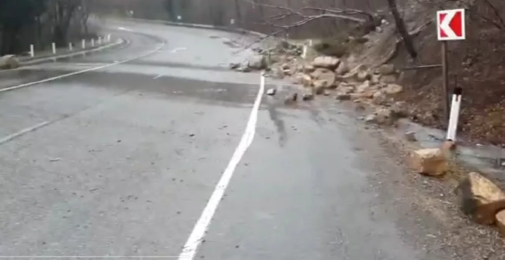 Камнепад сошел на трассу рано утром 19 февраля на 40 км автодороги Джубга - Сочи (в районе санатория “Белая Русь”).