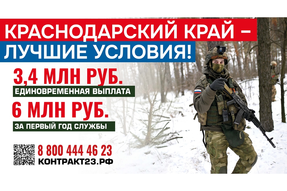 В Краснодарском крае увеличили выплаты для тех, кто подпишет контракт с Министерством обороны РФ. Единовременная выплата для бойцов с 1 февраля 2026 года составит 3,4 млн рублей. Из них 2,5 млн выплачивается по решению губернатора Кубани, 500 тыс. рублей - выплата муниципалитетов и 400 тыс. рублей - выплата Минобороны.