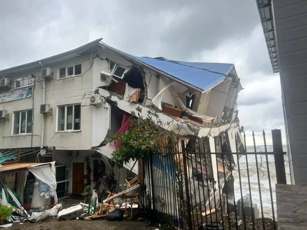 На пляже поселка Лоо штормом разрушило часть эллинга. Здание обрушилось прямо на глазах у жильцов, которые успели из него выйти. Трехтажное строение находилось на первой береговой линии. Видео обрушения очевидцы выложили в соцсетях.