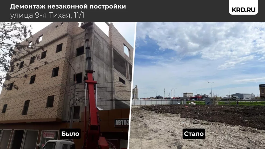 Работы по демонтажу была вынуждена организовать мэрия Краснодара при участии судебных приставов. Так как в полженеый срок решение суда о сносе собственник не выполнил.