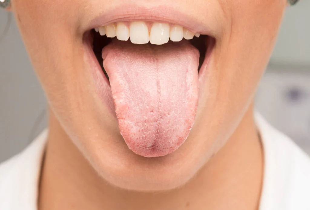 Нормальный цвет для языка – нежно-розовый. Небольшие отклонения допустимы, но плотный белый налет сигнализирует о болезнетворных процессах.